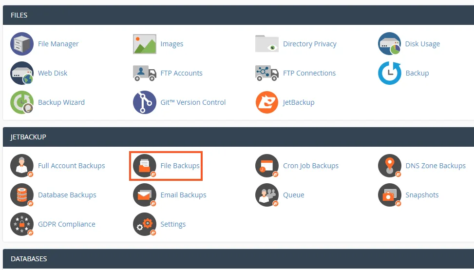 از همان بخش Jetbackup وارد قسمت File Backups بشوید.