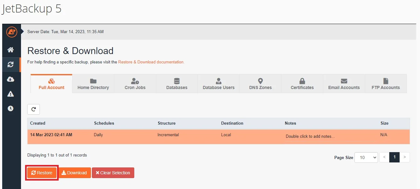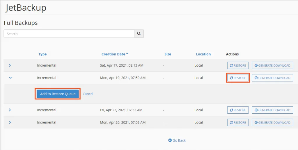 ریستور بکاپ های قبلی در سی پنل با Jetbackup