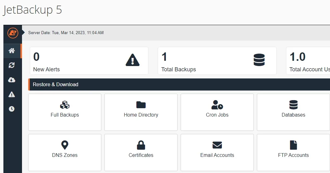 در بروز رسانی جدید نام این سرویس به JetBackup 5 تغییر یافته است. اما تغییری در روند کار ایجاد نشده و مشابه قبل می باشد.