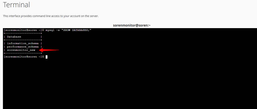 mysql -e "SHOW DATABASES;"